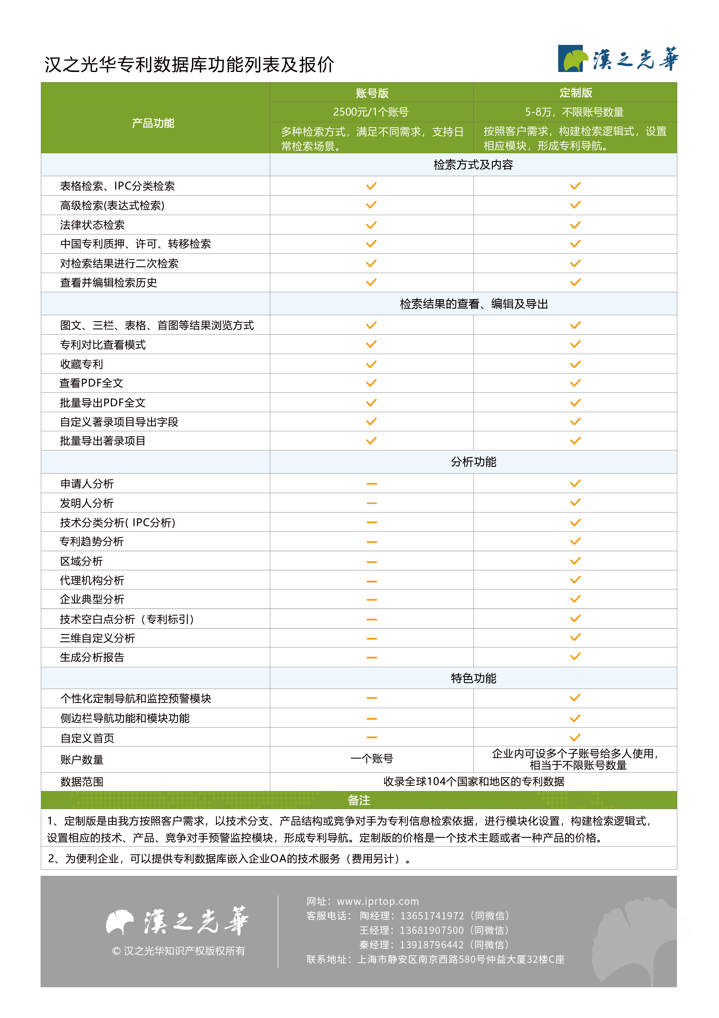 漢之光華的數(shù)據(jù)業(yè)務(wù)起于2005年,是中國專利信息服務(wù)業(yè)的開拓者之一。漢之光華專利數(shù)據(jù)庫,收錄全球100多個(gè)國家和地區(qū)、超過1億多條專利文獻(xiàn)。已為幾百家企業(yè)提供了個(gè)性化、定制化的專利數(shù)據(jù)庫服務(wù)。